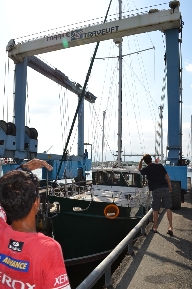 In the Lift Published July 31, 2012 at 666 × 1000 in Going to See a Man about a Duck ← Previous Next → Watching carefully as BELLE is lifted clear of the water.