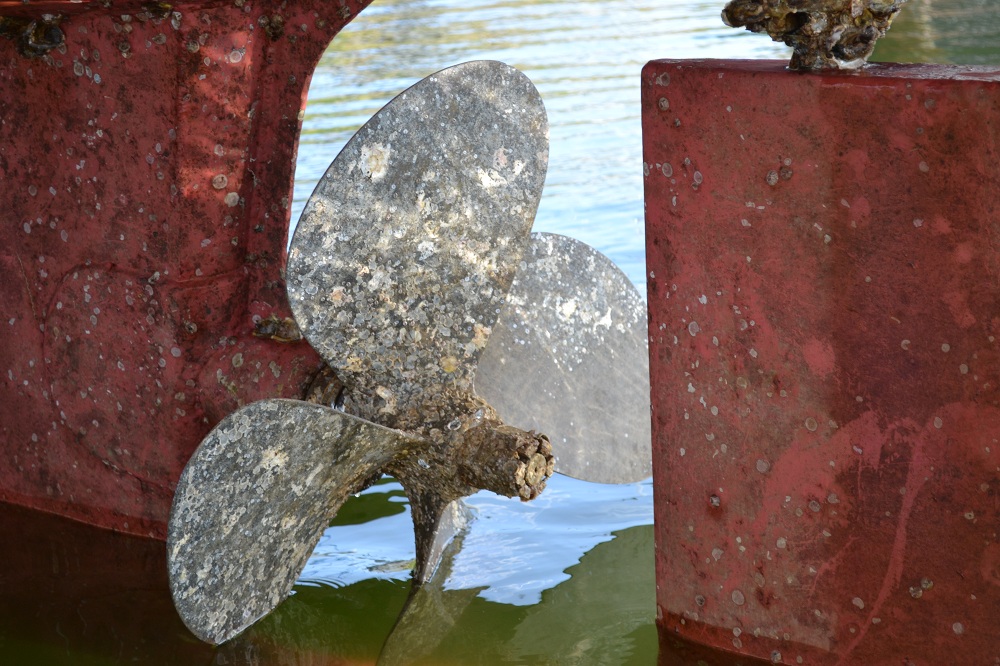 Underneath Published July 31, 2012 at 1000 × 666 in Going to See a Man about a Duck ← Previous Next → Inspecting the rudder and propeller. Some work needed here.