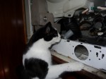 October 20, 2012: A couple of days ago, we stopped in at an electrical shop in Olongapo to order some 24 volt fans. Not an easy thing to come by here. Chris also asked about the pump for our washing machine. The owner, June, told us he’s made mods for several boats at the marina by adding in a second pump to the discharge system. He also installs a switch to flip between the 50 Hz and 60 Hz pumps as required. He even showed us a sample. It sounded like it just might work. So, Chris spent the better part of yesterday afternoon taking the whole machine apart just to gain access to the pump.