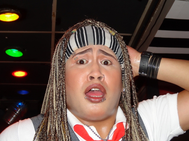 Saturday evening we decided to revisit Sam’s Pizza. We were there last weekend. Not only is the pizza good, but the entertainment is a hoot. And that’s the real reason to visit Sam’s. The audience is mostly local with lots of large groups celebrating birthdays. This time we decided to sit right up front for a better view of the two bands. The house band plays every Saturday and has quite a wide-ranging playlist. Gangnam Style is hugely popular here like it seems to be everywhere. The guest band is more into reggae.