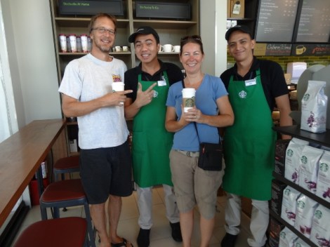 The yacht club is located in the Subic Bay Freeport Zone, a special duty free area modeled after Singapore and just a 130km drive from Manila, although sometimes it takes more than three hours to cover that distance. SBFZ has wide tree lined boulevards, sports complexes, two Starbucks, international hotels and restaurants, schools, beaches, a carnival, dockyards, a golf course, aquarium, zoo, large duty free stores, grocery stores, an airstrip and a brand new, air conditioned shopping mall called Harbor Point. Did I mention Starbucks? It’s all very quiet and relaxed. Workers keep the area clean and look after the landscaping. Traffic is light. Police and security guards have a very visible presence.